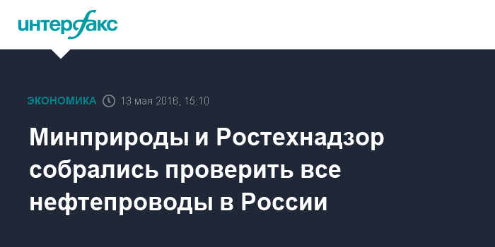 Москва. 13 мая. INTERFAX.RU - Минприроды вместе с Ростехнадзором планируют организовать совместную проверку технического состояния всех нефтепроводов в России, сообщил глава министерства Сергей Донской.