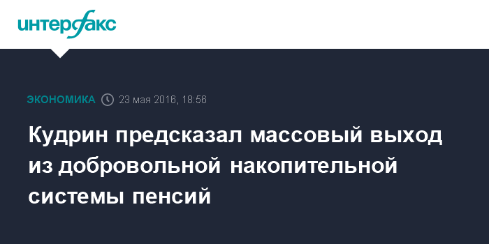 Кудрин предсказал массовый выход из добровольной накопительной системы пенсий