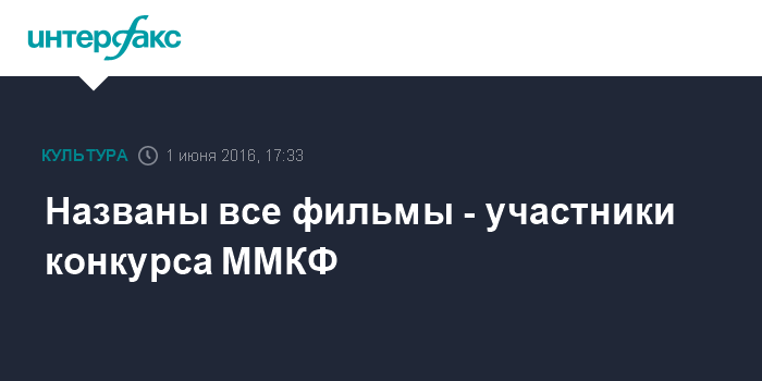 Москва. 1 июня. INTERFAX.RU - Организаторы 38-го Московского международного кинофестиваля (ММКФ) назвали еще четыре фильма, вошедшие в основную конкурсную программу фестиваля. Всего в основном конкурсе ММКФ будут участвовать 12 фильмов.