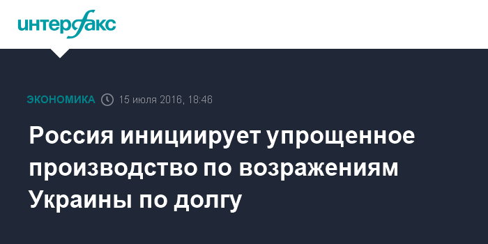 Россия инициирует упрощенное производство по возражениям Украины по долгу