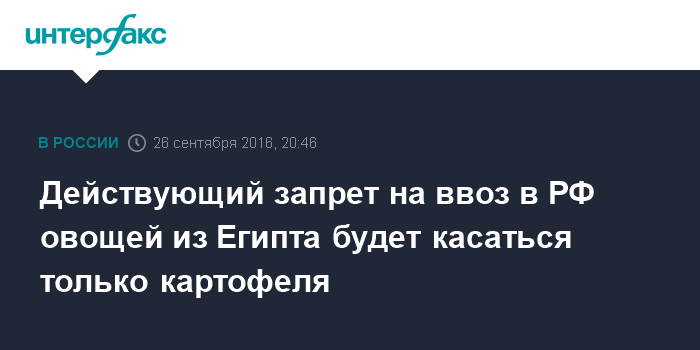 Действующий запрет на ввоз в РФ овощей из Египта будет касаться только картофеля