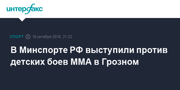 Москва. 18 октября. INTERFAX.RU - Показательные выступления детей на международном турнире по профессиональным боям ММА Grand-Prix Akhmat 2016 Final в Грозном являются нарушением, сообщила пресс-служба Минспорта РФ во вторник.