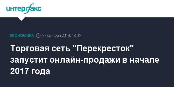 Москва. 27 октября. INTERFAX.RU - Х5 Retail Group планирует в начале следующего года запустить онлайн-продажи на базе "Перекрестка".