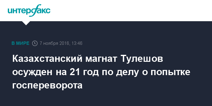 Казахстанский магнат Тулешов осужден на 21 год по делу о попытке госпереворота