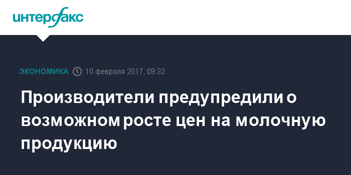Москва. 10 февраля. INTERFAX.RU - Национальный союз производителей молока ("Союзмолоко") предупредил министра сельского хозяйства Александра Ткачева о возможном росте цен на продукцию из-за ограничений Россельхознадзора по ввозу сырого молока из регионов, где отмечены случаи болезней животных. Об этом пишет "Коммерсант".