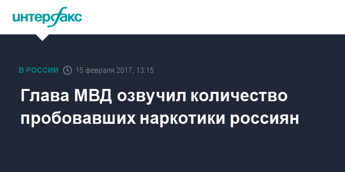 Москва. 15 февраля. INTERFAX.RU - Свыше 2 миллионов граждан России, по данным соцопросов, употребляют наркотики на регулярной основе, заявил на заседании Государственного антинаркотического комитета министр внутренних дел России Владимир Колокольцев.