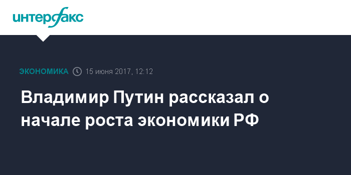 Москва. 15 июня. INTERFAX.RU - Рецессия в России преодолена, экономика вошла в период роста, заявил президент Владимир Путин в ходе "прямой линии" в четверг.