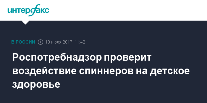 Москва. 18 июля. INTERFAX.RU - Роспотребнадзор проверит, как спиннеры могут повлиять на здоровье детей, сообщила во вторник пресс-служба ведомства.