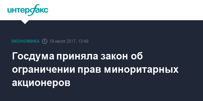 Госдума приняла закон об ограничении прав миноритарных акционеров