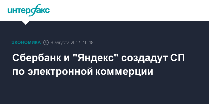 Сбербанк и "Яндекс" создадут СП по электронной коммерции