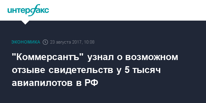 "Коммерсантъ" узнал о возможном отзыве свидетельств у 5 тысяч авиапилотов в РФ
