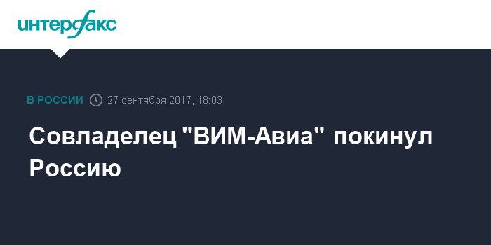 Совладелец "ВИМ-Авиа" покинул Россию