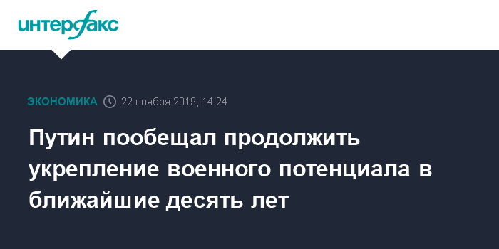 Путин пообещал продолжить укрепление военного потенциала в ближайшие десять лет