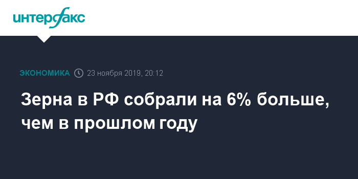 Зерна в РФ собрали на 6% больше, чем в прошлом году