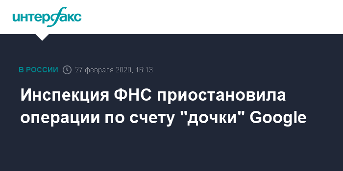 Инспекция ФНС приостановила операции по счету "дочки" Google