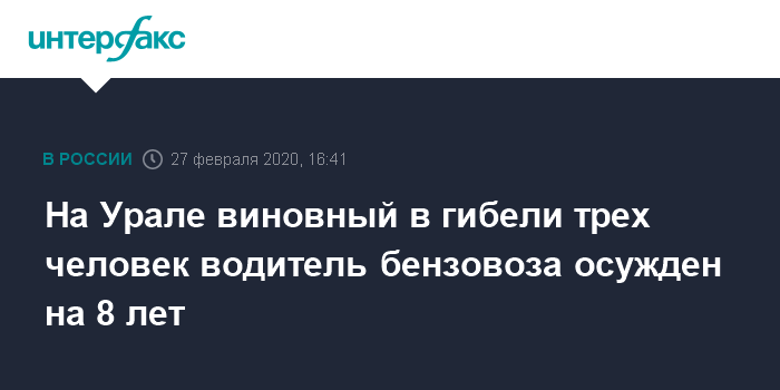 На Урале виновный в гибели трех человек водитель бензовоза осужден на 8 лет