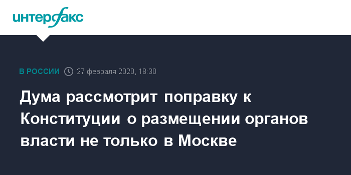 "В части 2 статьи 70 после слов о том, что столицей Российской Федерации является город Москва, указывается, что местом постоянного пребывания отдельных федеральных органов государственной власти может быть другой город, определенный федеральным конституционным законом", - пояснил парламентарий. Поправки вносятся в главу 3 "Федеративное устройство".