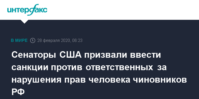Москва. 28 февраля. INTERFAX.RU - Американские сенаторы Марко Рубио и Бен Кардин представили резолюцию, в которой призывают к освобождению политических заключенных в России и введению санкций против российских чиновников, ответственных за нарушения прав человека.
