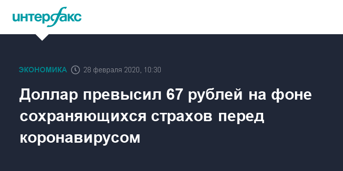 Доллар превысил 67 рублей на фоне сохраняющихся страхов перед коронавирусом