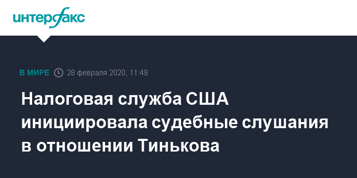 Налоговая служба США инициировала судебные слушания в отношении Тинькова