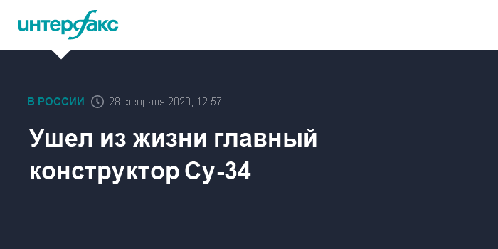Москва. 28 февраля. INTERFAX.RU - Скончался главный конструктор фронтового бомбардировщика Су-34 Роллан Мартиросов, сообщает в пятницу пресс-служба компании "Сухой".