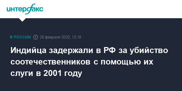 Индийца задержали в РФ за убийство соотечественников с помощью их слуги в 2001 году