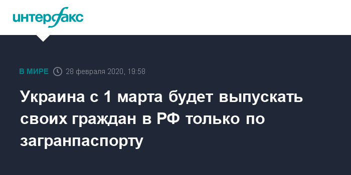 Украина с 1 марта будет выпускать своих граждан в РФ только по загранпаспорту