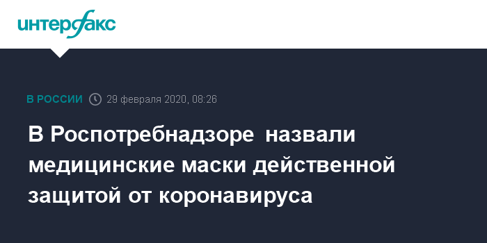 В Роспотребнадзоре назвали медицинские маски действенной защитой от коронавируса