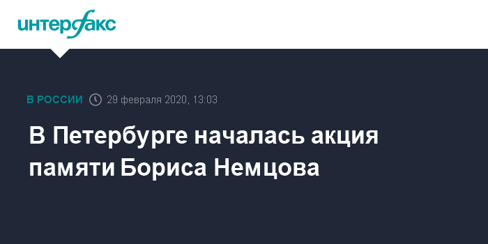 Москва. 29 февраля. INTERFAX.RU - Согласованная с властями акция памяти Бориса Немцова проходит в Санкт-Петербурге.