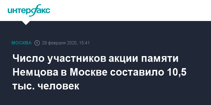 Москва. 29 февраля. INTERFAX.RU - На согласованную с властями акцию в центре Москвы в память о политике Борисе Немцове пришли 10 500 человек, сообщили "Интерфаксу" в субботу в пресс-службе столичного управления МВД.