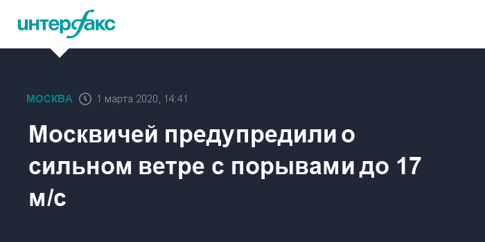 Как сообщили "Интерфаксу" в воскресенье в столичном главке МЧС, по прогнозам синоптиков (Росгидромет), в период с 15:00 часов 01 марта до 10:00 часов 02 марта местами по столице ожидается усиление ветра южной четверти с порывами 12-17 м/с.