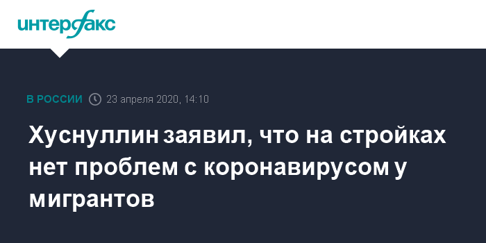 Москва. 23 апреля. INTERFAX.RU - На российских стройках нет проблем с мигрантами, несмотря на коронавирус, заявил каналу "Россия-24" вице-премьер Марат Хуснуллин. По его словам , в большинстве регионов стройки продолжаются.