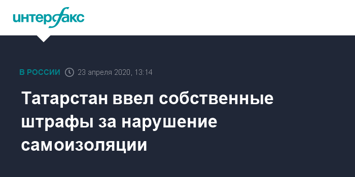 Москва. 23 апреля. INTERFAX.RU - Депутаты Госсовета Татарстана приняли поправки в Кодекс об административных правонарушениях, устанавливающие суммы штрафов за нарушение режима самоизоляции.