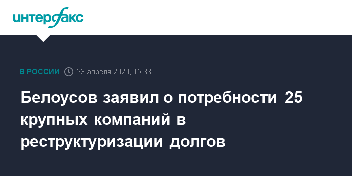 Белоусов заявил о потребности 25 крупных компаний в реструктуризации долгов