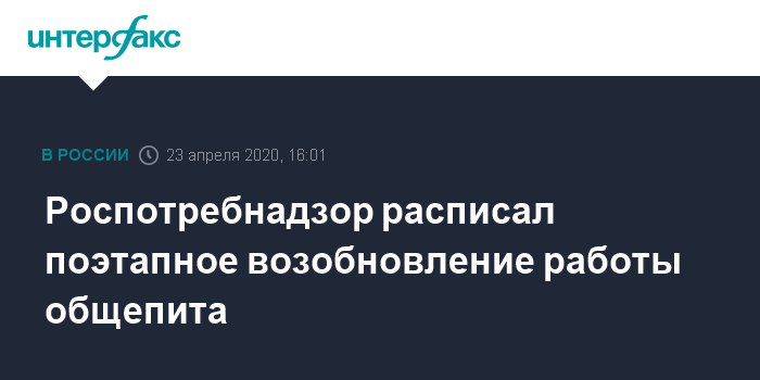 Роспотребнадзор расписал поэтапное возобновление работы общепита