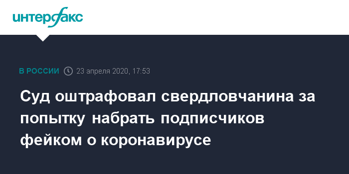 Суд оштрафовал свердловчанина за попытку набрать подписчиков фейком о коронавирусе