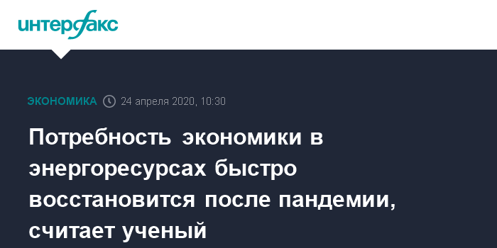 Потребность экономики в энергоресурсах быстро восстановится после пандемии, считает ученый
