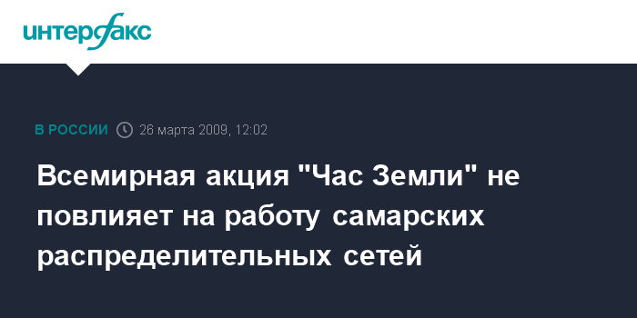 Москва. 26 марта. INTERFAX.RU – Центр управления сетями филиала ОАО "МРСК Волги" - Самарские распределительные сети готовы к скачку напряжения в электрических сетях, которое ожидается 28 марта в результате всемирной акции "Час Земли".