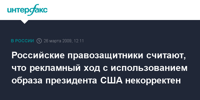 Москва. 26 марта. INTERFAX.RU – Российские правозащитники считают "пошлым и некорректным" использование российским рекламным агентством образа американского президента Барака Обамы в рекламе мороженого.