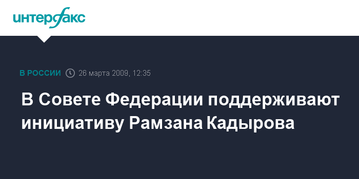 Москва. 26 марта. INTERFAX.RU – В Совете Федерации считают инициативу президента Чечни Рамзана Кадырова о необходимости завершения контртеррористической операции в республике справедливым, но требующим дополнительного изучения.