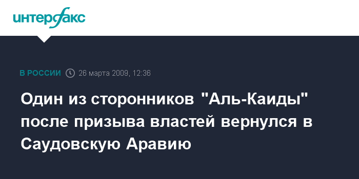 Один из сторонников "Аль-Каиды" после призыва властей вернулся в Саудовскую Аравию