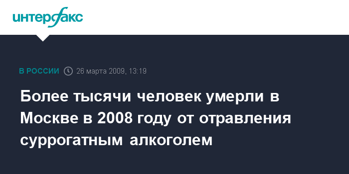 Более тысячи человек умерли в Москве в 2008 году от отравления суррогатным алкоголем