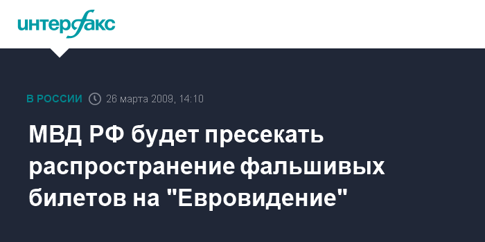 МВД РФ будет пресекать распространение фальшивых билетов на "Евровидение"