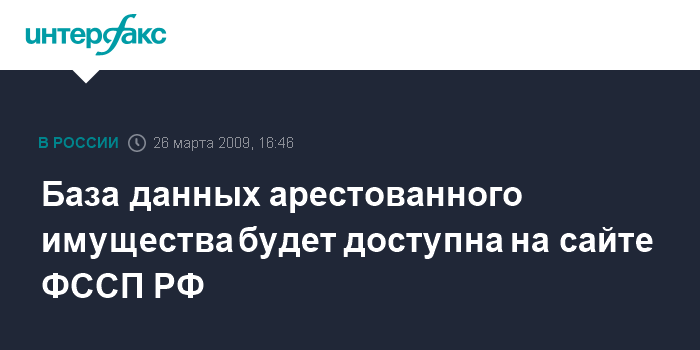 Москва. 26 марта. INTERFAX.RU - У Федеральной службы судебных приставов (ФССП) на новом официальном сайте появится федеральная база данных арестованного имущества, а также реестр должников.