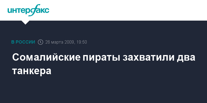 Лондон. 26 марта. INTERFAX.RU - Пираты, действующие у берегов Сомали, захватили два танкера из Греции и Норвегии, передает BBC.
