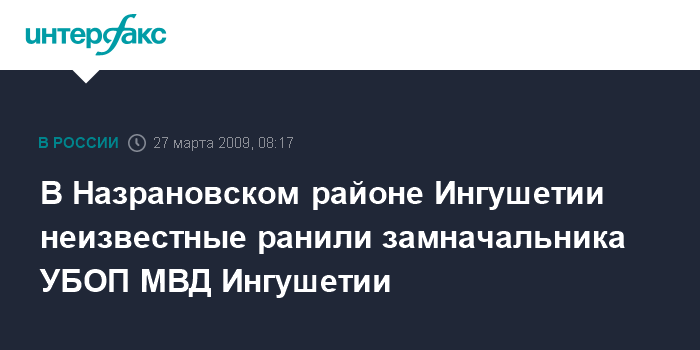 Москва. 27 марта. INTERFAX.RU - В селе Экажево Назрановского района Ингушетии неизвестные лица обстреляли автомашину, в которой передвигался заместитель начальника УБОП МВД Ингушетии Башир Аушев.