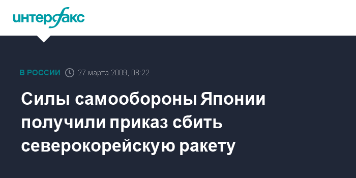 Москва. 27 марта. INTERFAX.RU - Совет безопасности Японии под председательством премьер-министра Таро Асо принял решение сбить северокорейскую ракету или ее обломки, если они будут падать на японскую территорию, сообщает британская телерадиовещательная корпорация BBC в пятницу.