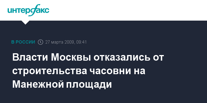 Власти Москвы отказались от строительства часовни на Манежной площади