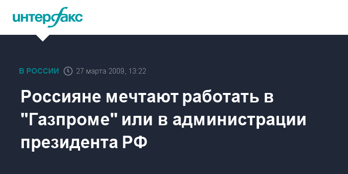 Россияне мечтают работать в "Газпроме" или в администрации президента РФ