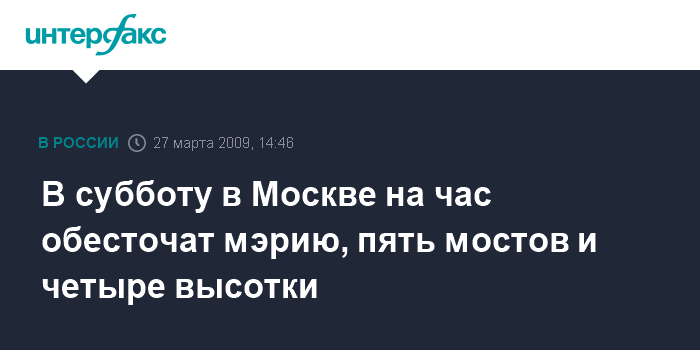 В субботу в Москве на час обесточат мэрию, пять мостов и четыре высотки